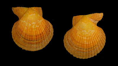 Mimachlamys crassicostata (Sowerby II, 1842) Syn.: Chlamys nobilis (Reeve, 1852) Trawled by fishermen from about 20 meters depth on muddy sand bottom; Off Sanya, Hainan, China, South China Sea; November 2015
