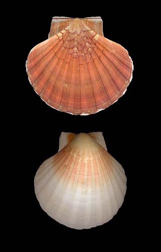 Pecten maximus (Linnaeus, 1758) Trawled between 35 to 40 m depth on sandy bottom by scallop fishingboats; Bay of St-Brieuc, Armorican Coast, French-Brittany, France; Collected between April and June 2009