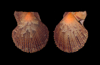 Mimachlamys varia (Linnaeus, 1758) In waste heap of oysterfarm; Le Pô, French Brittany, France; collected 17. October 2005