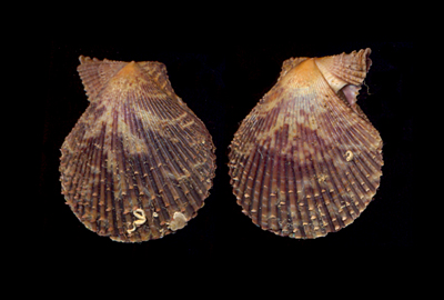 Mimachlamys varia (Linnaeus, 1758) Collected at 8 meters depth on rocky bottom; Cagliari Gulf, Sardinia, Italy; 1990