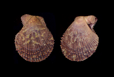 Mimachlamys varia (Linnaeus, 1758) Collected at 8 meters depth on rocky bottom; Cagliari Gulf, Sardinia, Italy; 1990