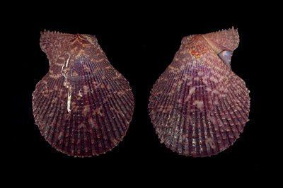 Mimachlamys varia (Linnaeus, 1758) Collected at 8 meters depth on rocky bottom; Cagliari Gulf, Sardinia, Italy; 1990